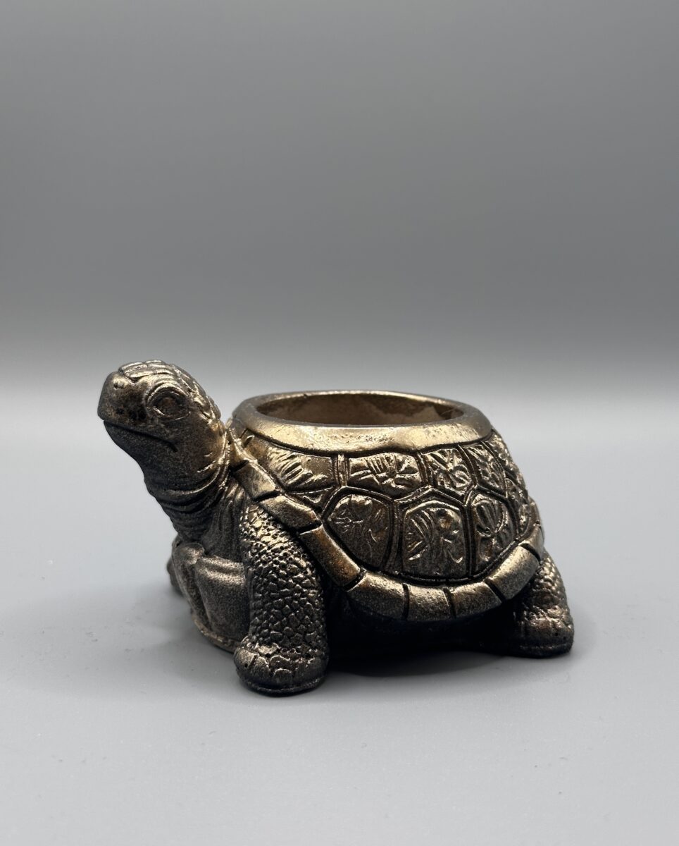 Adopt a little more patience in your daily routine with this exquisitely detailed tortoise planter. Featuring a beautifully textured shell and a friendly, hand-finished expression, this piece is designed to cradle your favorite succulents or air plants with care. Its sturdy, stone-like composition is finished with a sophisticated metallic sheen that sparkles brilliantly in direct sunlight, making it a standout accessory for windowsills and desks alike.