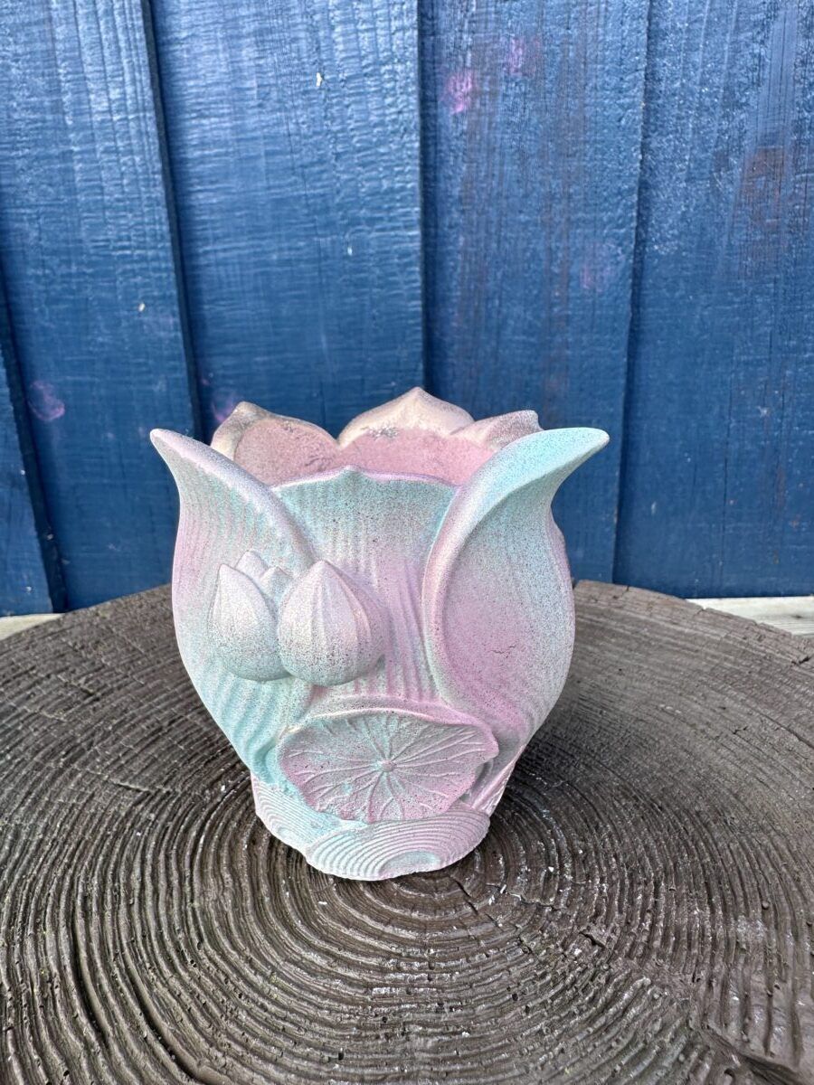 Capture the elegance of a perennial spring with these intricately sculpted lotus flower planters. Each piece features a gradient of soft, dusty rose transitioning into shimmering gold, finished with a fine, granular texture that catches the light from every angle. The layered petal design and embossed water-lily motifs create a romantic, ethereal aesthetic perfect for vanity tops or sunlit windowsills.